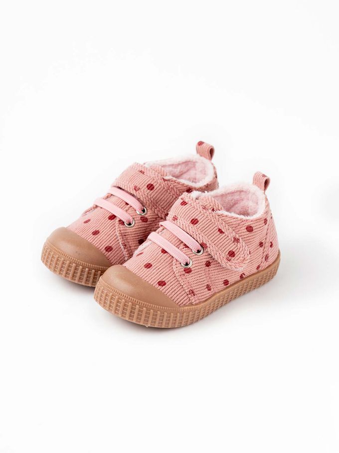 韓國 OZKIZ - (內刷毛)腳趾保護防滑休閒鞋-燈芯絨-粉