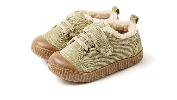 韓國 OZKIZ - 腳趾保護保暖羊羔絨休閒鞋-卡其綠