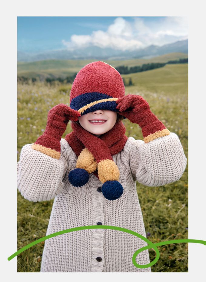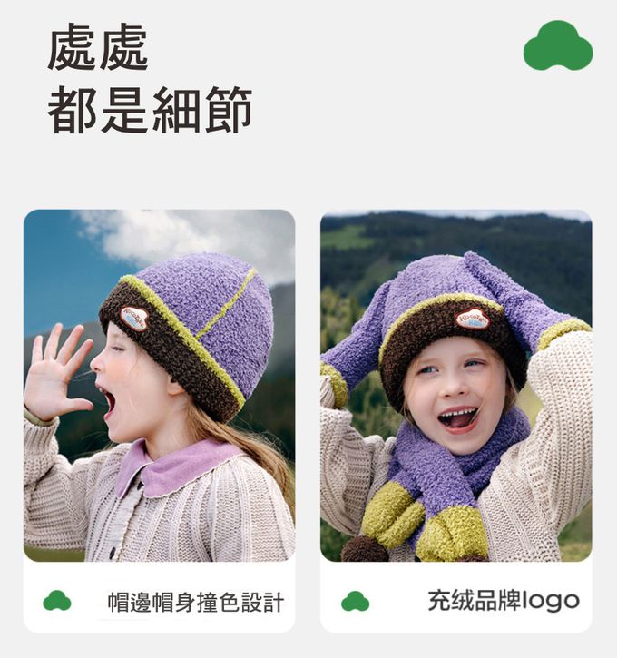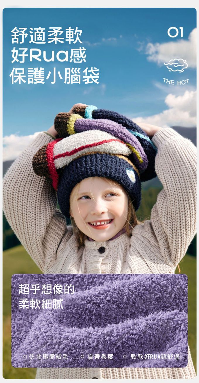 品名:糯糯絨保暖拚色毛帽-兒童款