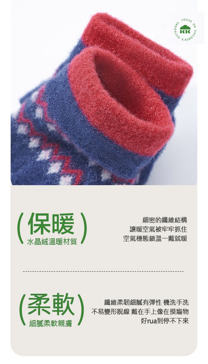 kocotree - 超Q翻蓋五指保暖手套-均碼