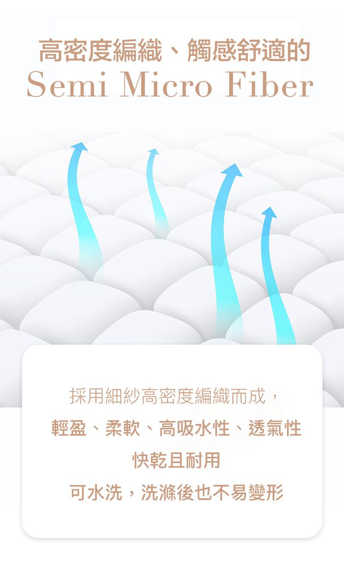 • Semimicro材質,輕盈柔軟、吸濕透氣!