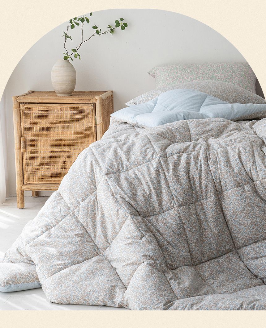台灣的被子多是被胎+被套這樣的形式;會這樣設計是因為以前棉質填充不太好洗(不快乾),亦或是羽絨被不能水洗,只好採這樣的形式,只洗被套!但韓國棉被現在都已經改聚酯纖維/玉米纖維填充,不僅能水洗,還快乾!也比傳統棉被更加輕盈~