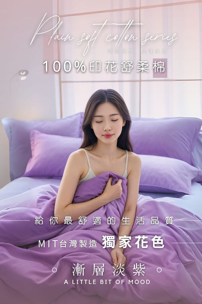 AGAPE雅家倍 - MIT舒柔棉薄床包被套組-漸層淡紫