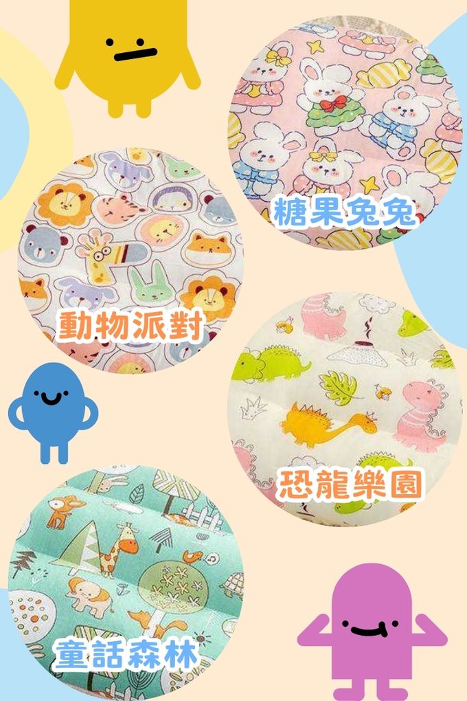 -新生兒親膚衣物(嬰幼兒包巾與背巾、包屁衣、學習褲、紗布衣等)。