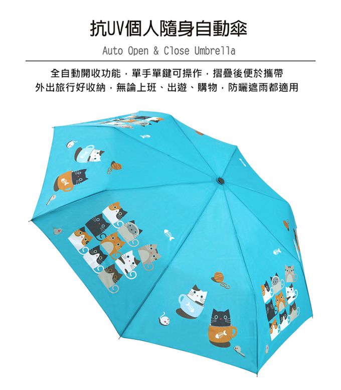 抗UV隨身自動傘-咖啡杯貓-315g