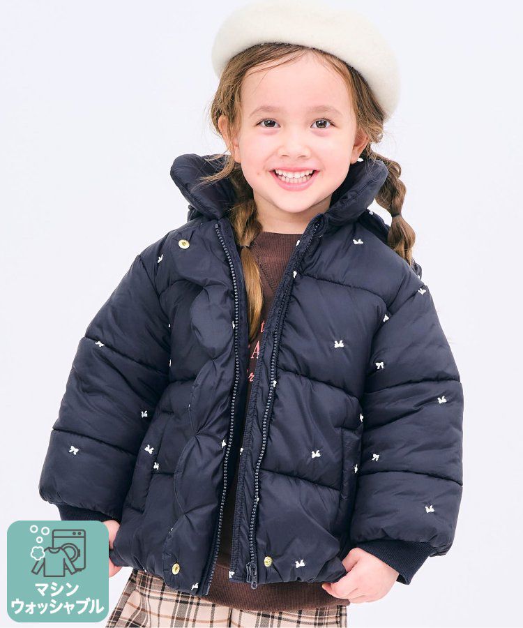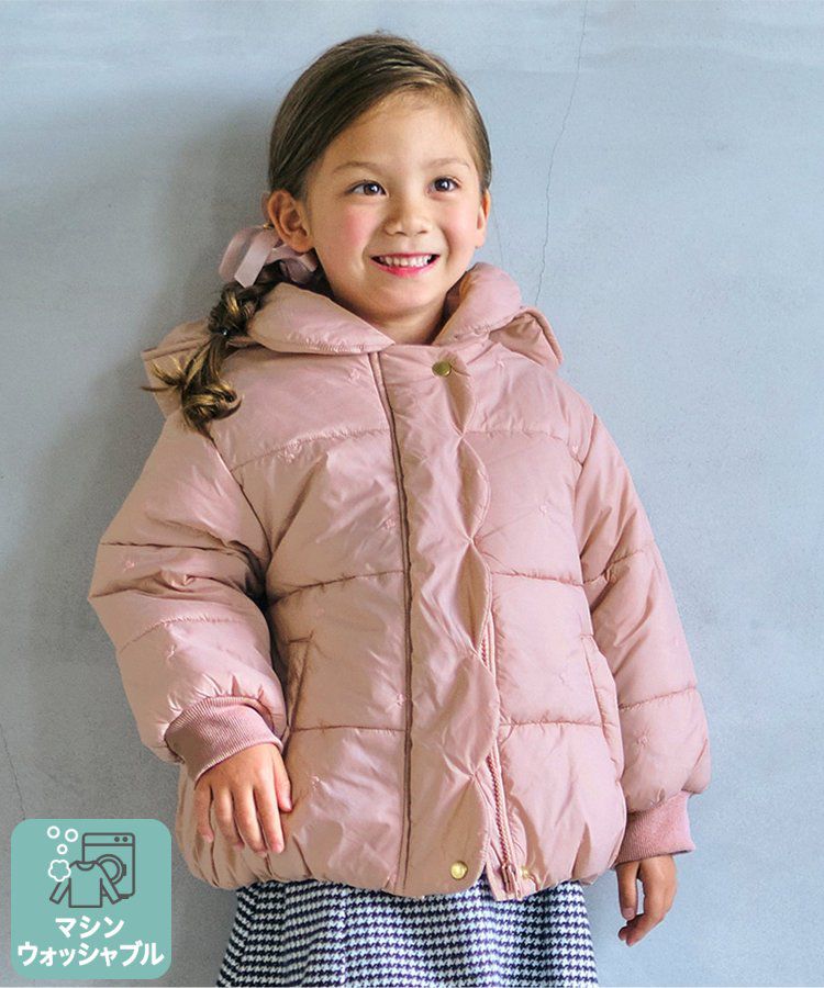 [可機洗]低調甜蜜刺繡連帽鋪棉外套