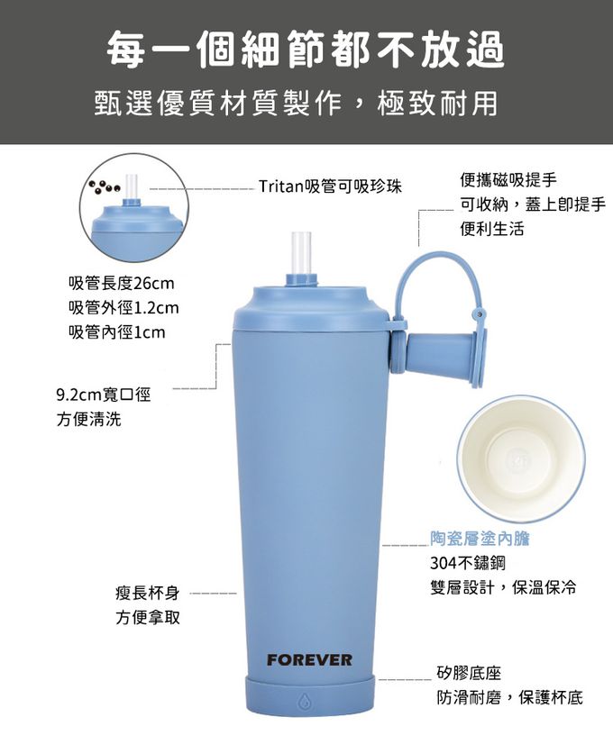 材質:杯身/304不鏽鋼(陶瓷內膽)、外殼201不銹鋼 吸管/TRITAN、杯蓋/PP+矽膠密封圈