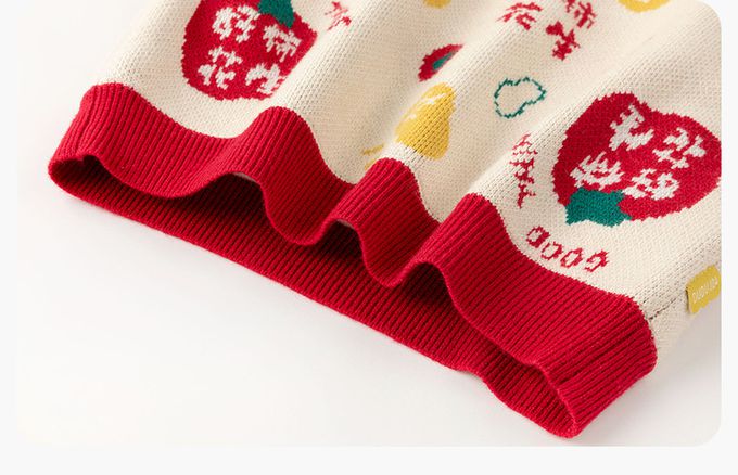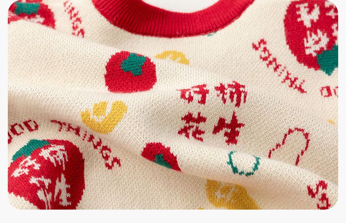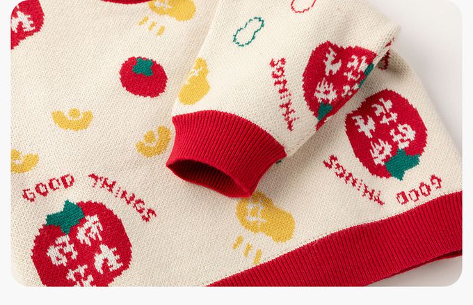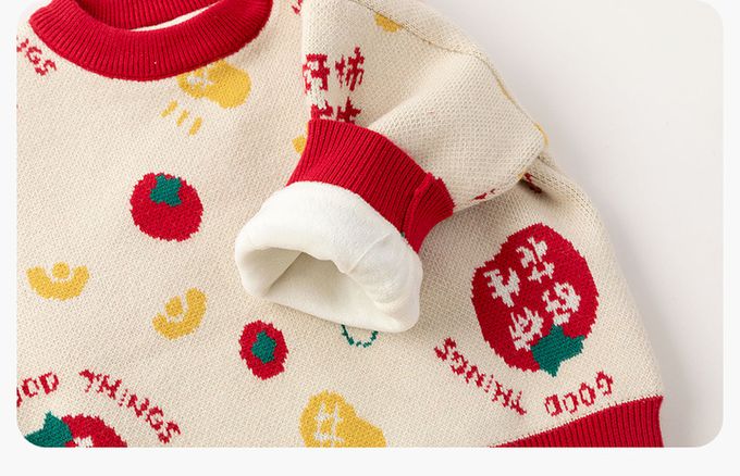 撞色圓領長袖針織上衣/毛衣(加絨)-好柿花生-米白色