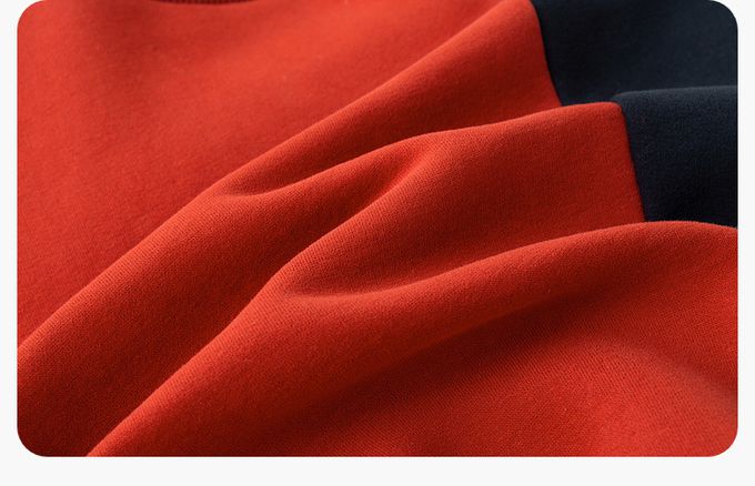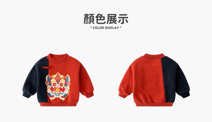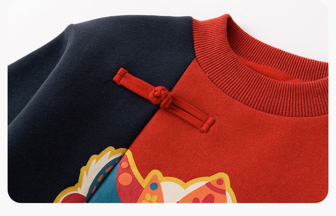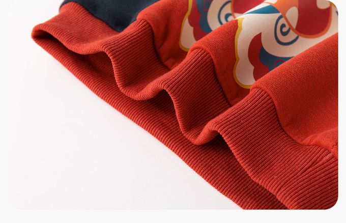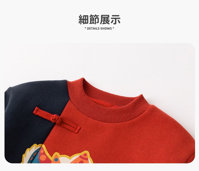 圓領長袖上衣/大學T(加絨)-吉祥瑞獸-拼色紅