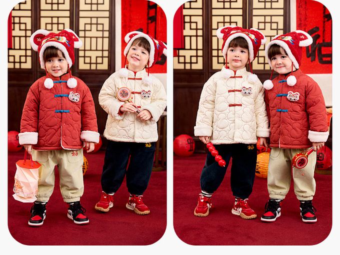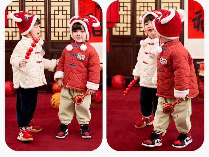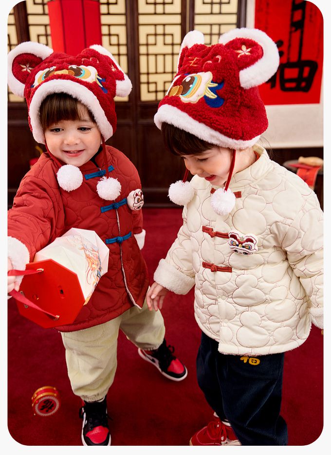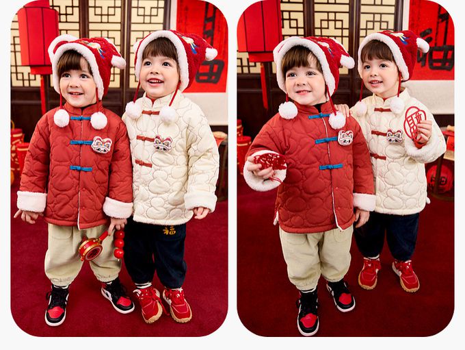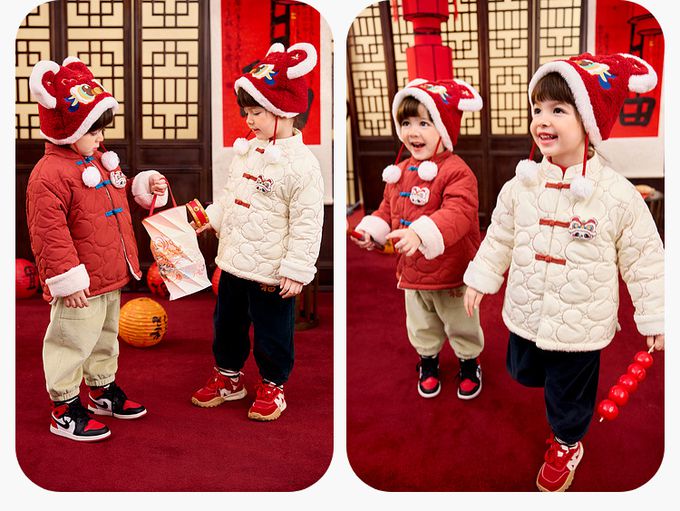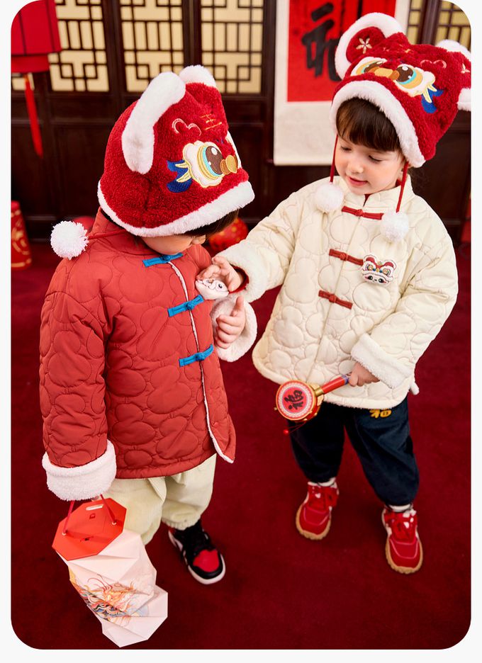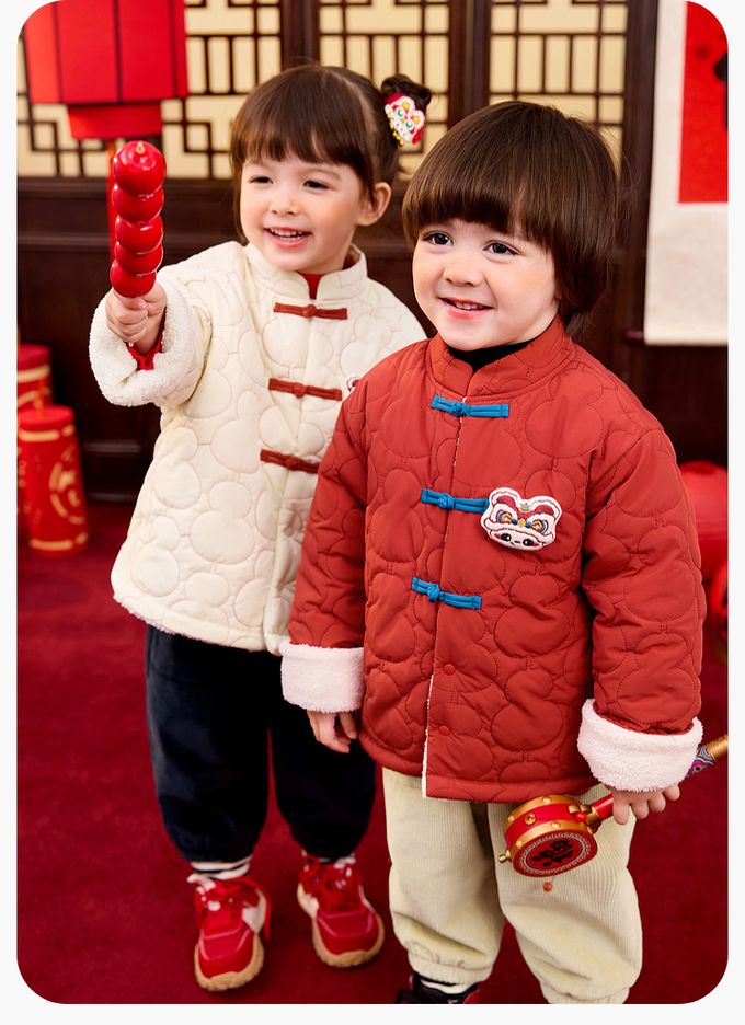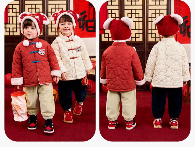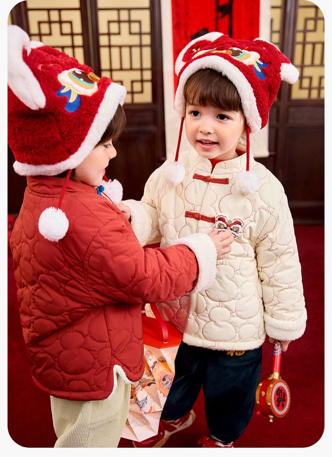 小立領葫蘆壓紋鋪棉外套(加絨)-福氣熊貓-紅色