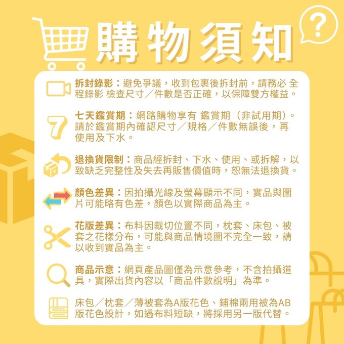 4. 部分商品依據消費者保護法的規定,不適用七天鑑賞期/猶豫期範圍: