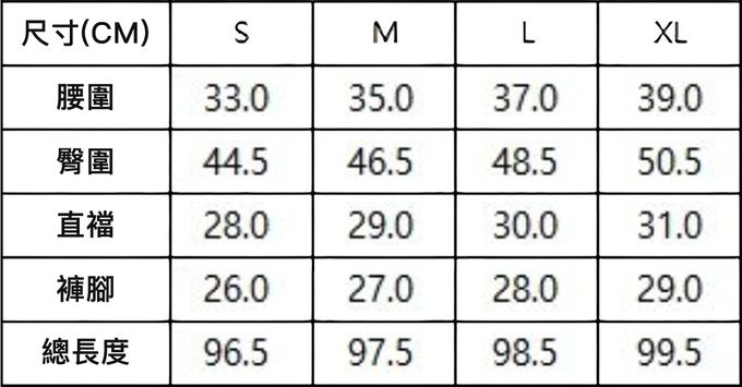 1. 尺寸表單位皆為公分(cm),實際尺寸會因布料彈性、水洗、測量起迄點等因素略有誤差。