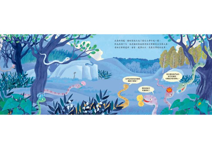 從《荀子》〈勸學〉中提到的「螣蛇無足而飛」可知,螣蛇是傳說中會飛行的蛇,而《十二小守護過新年——起飛吧!小螣蛇》的創作緣由,就是來自古代螣蛇傳說。故事從螣蛇家族只剩下最年長的老祖宗爺爺具備飛翔能力,而小螣蛇阿飛希望能在老祖宗爺爺的慶生大會上,實現「讓螣蛇再度飛上天」的夢想開始。究竟主角阿飛會怎麼飛上藍天?歡迎一起欣賞陳沛慈、嚴凱信兩位老師再次攜手創作的蛇年故事。