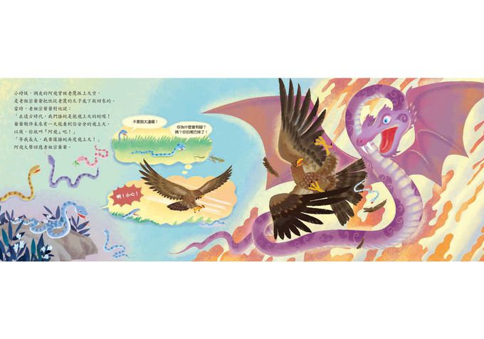 如此努力的歷程背後,是一份溫暖的心意,小蛇們都期望能得到心中仰慕螣蛇老祖宗的笑容。溫暖可愛的故事搭配逗趣生動的插畫,《起飛吧!小螣蛇》是親子共讀迎接蛇年最棒的繪本。