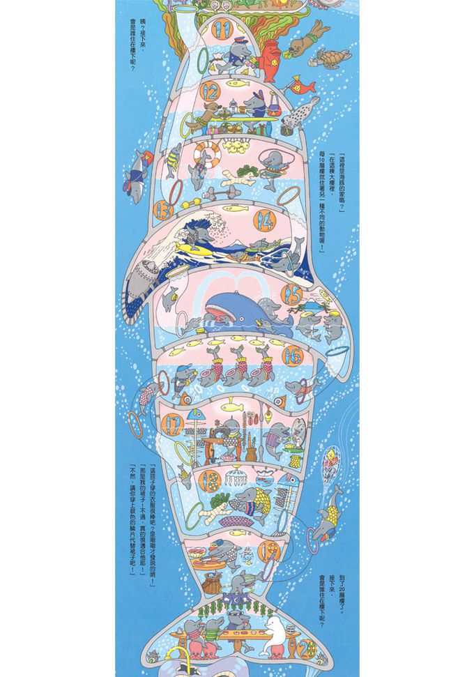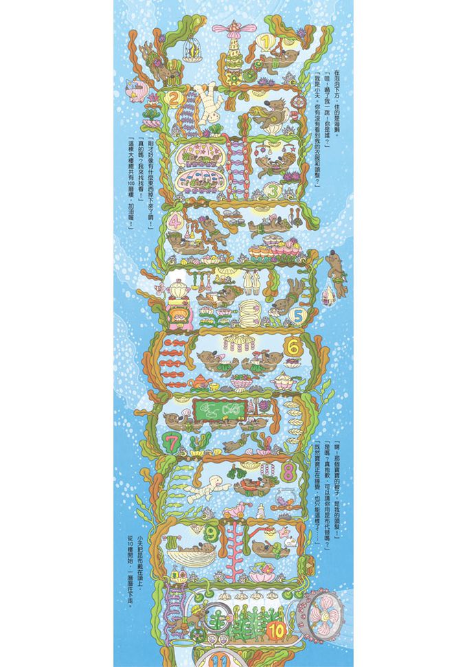 作者根據不同海洋生物的特性,打造多樣化的樓層,讓孩子能在趣味故事中,一邊認識海洋生態,一邊學數數。