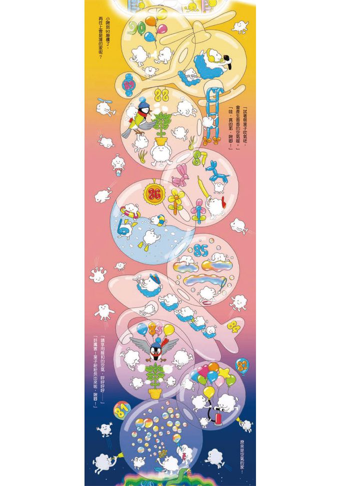 ◎跟著白頰山雀小啾一起展開雲上的不可思議之旅,和雨滴、風兒還有泡泡變成好朋友!