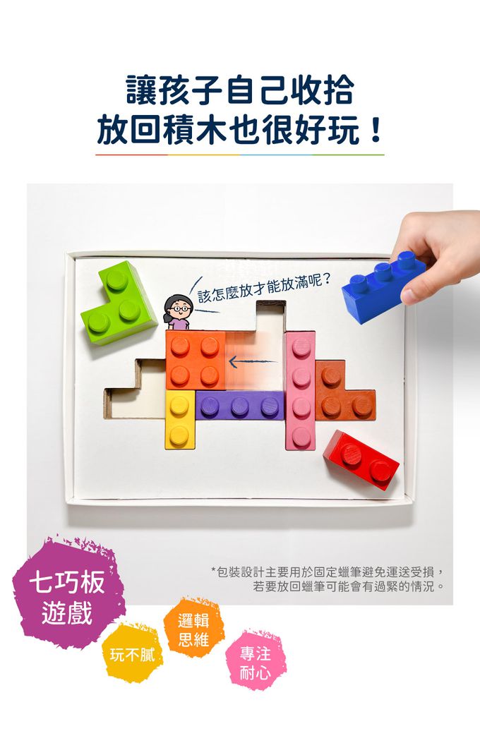 ◎ 包裝設計主要用於固定蠟筆避免運送受損,若要放回蠟筆可能會有過緊的情況。