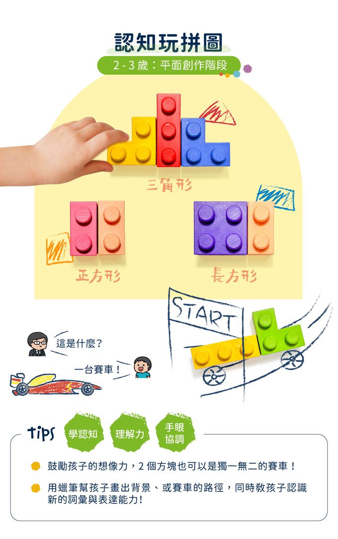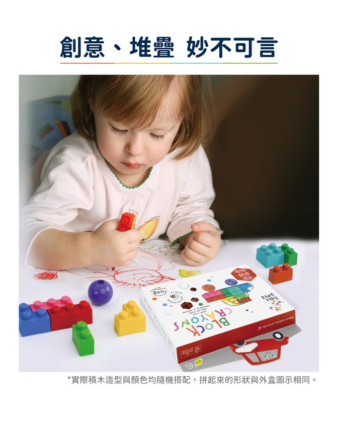 ◎ 實際積木造型與顏色均隨機搭配,拼起來的形狀與外盒圖示相同。