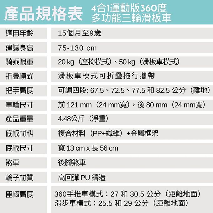 品名:GO UP4合1運動版360度多功能三輪滑板車