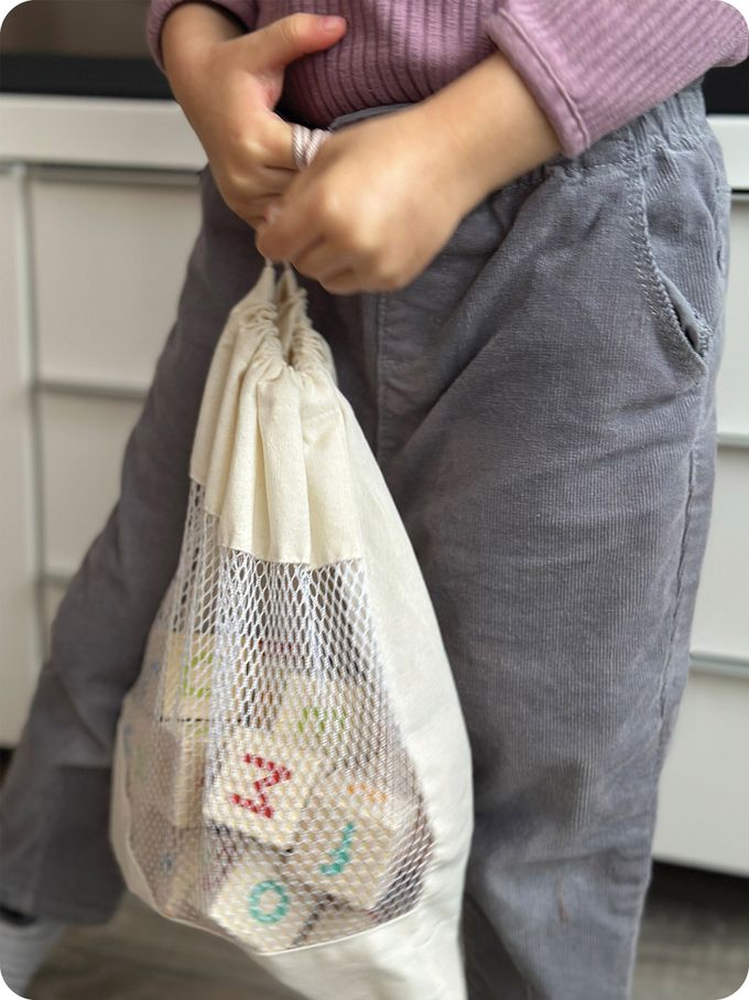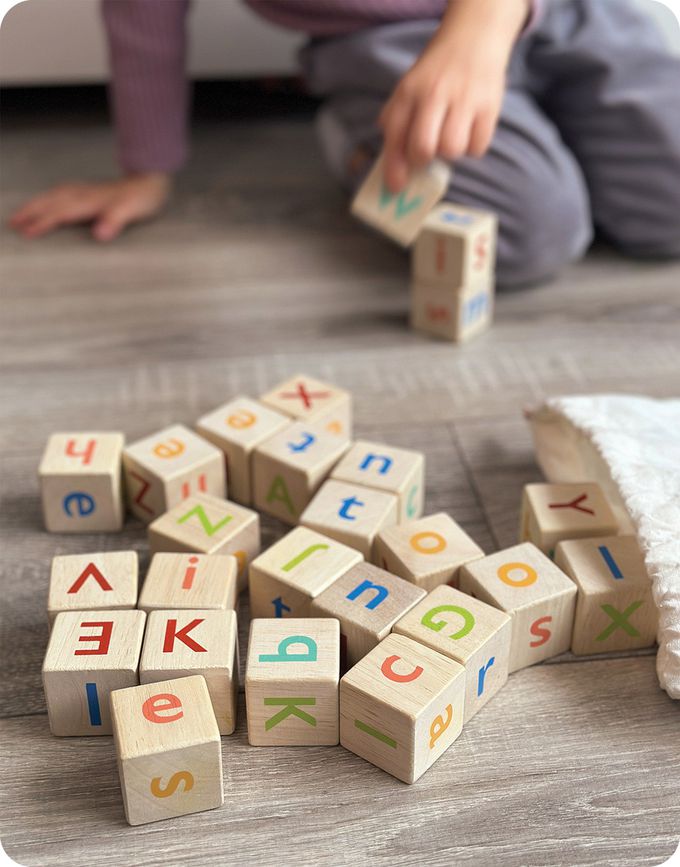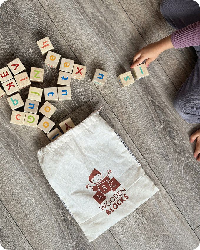 專為學齡前孩子設計可堆疊和拼字的積木。透過26塊積木玩中學,每塊積木6面都印有不同顏色的字母,內附一只抽繩束口袋方便收納。字母積木可做基礎的拼字,包含了小寫和大寫,足夠讓孩子做單字和句子的練習,鼓勵學齡前的孩子透過遊戲認識單字和字母。
