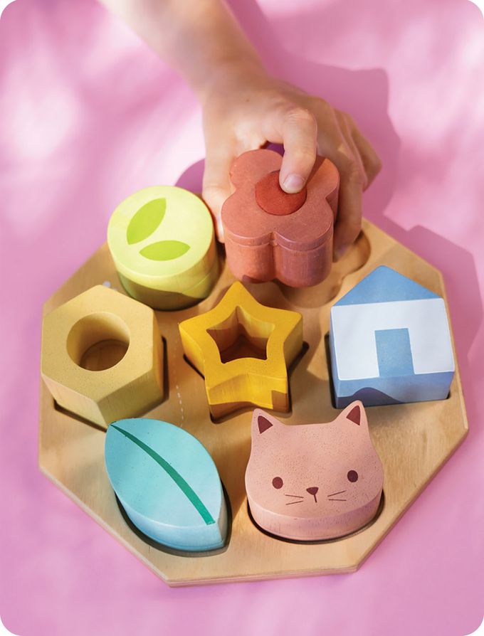 ★ 實木觸感溫潤且重量適當,最適合小手抓握遊戲。