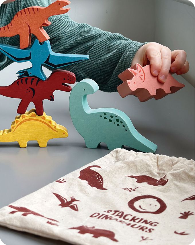 準備好享受木製積木的堆疊樂趣吧!這項有趣的挑戰結合了堆疊和平衡感,培養解決問題的能力和手部精細運動技能。孩子在過程中學會耐心和堅持,瞭解每次的失敗就是邁向成功的第一步,每一次的重建都是為了成就更精采的冒險。恐龍疊疊樂內含6個積木:暴龍、三角龍、劍龍、雷龍、禽龍和翼手龍,精美包裝在一只抽繩束口袋,方便收納。