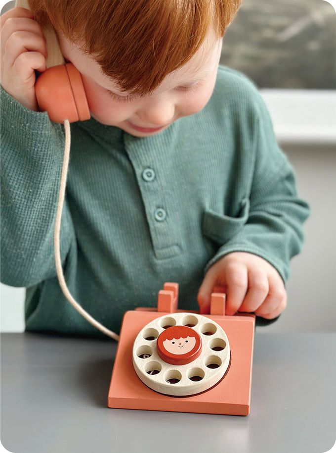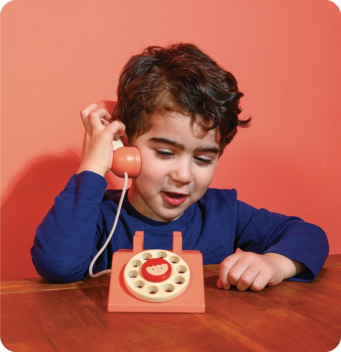 經典懷舊的轉盤式電話,拿起話筒,用手指撥動數字旋轉盤,讓孩子模擬打電話的情境,也可以認識數字。