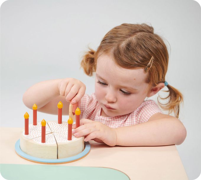 蛋糕切切樂,內含6塊切片蛋糕、6根蠟燭、蛋糕托盤和三角蛋糕鏟。現在就一起來舉辦派對,讓孩子透過家家酒遊戲,盡情發揮想像力和創造力。
