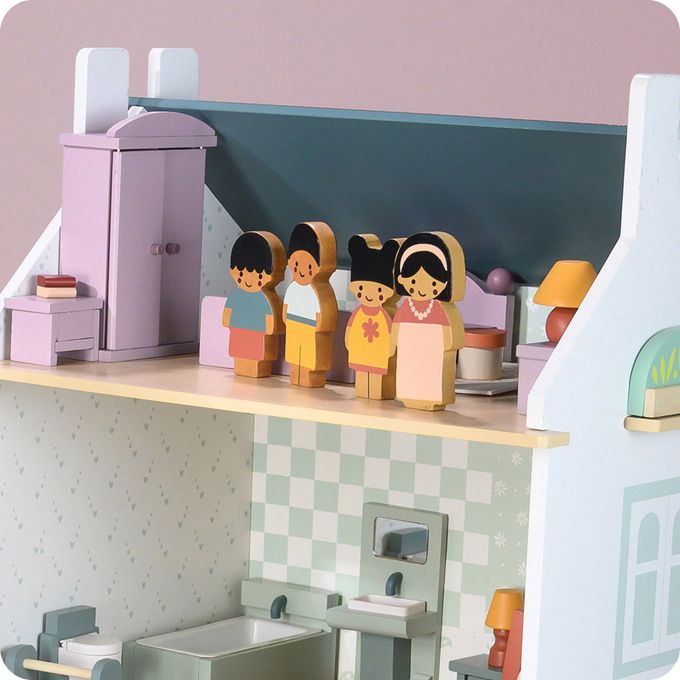 綠野仙蹤渡假別墅,寓意孩子的成長之旅。兩層樓的生活空間和可掀式屋頂,屋頂掀開可展示閣樓的空間。搭配歐式家具配件,可滿足孩子的想像力和創造力。透過娃娃屋的陳列擺設,融入生活情境,還可建構立體空間感、培養觀察力和提升美感素養。