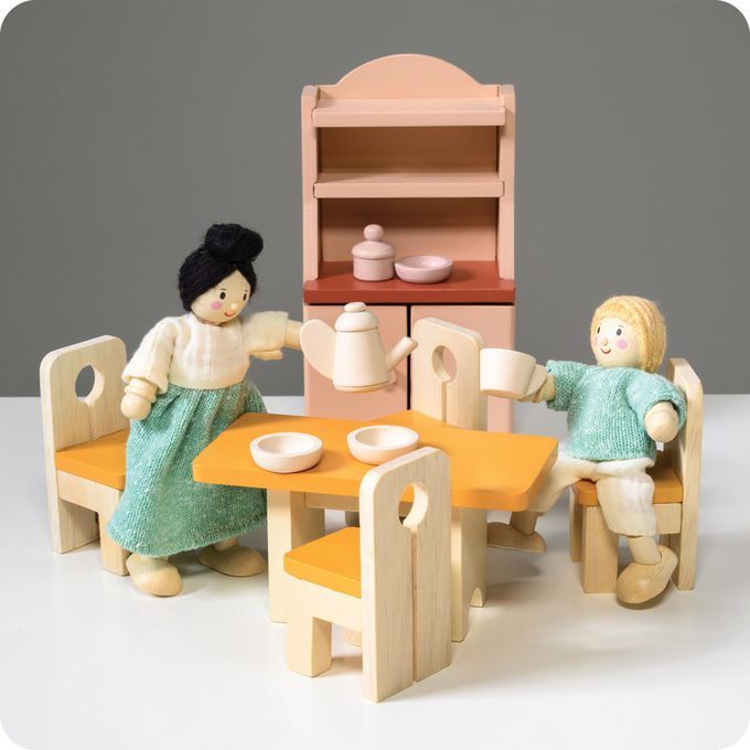 蜜糖娃娃家庭,爸爸、媽媽和2個小孩,一家四口都穿著設計精美的手工服飾。他們的四肢靈活,可以擺出各種有趣的姿勢,為娃娃屋注入活力和歡笑的泉源。孩子透過模擬生活的情境,培養觀察力、提升社交及語言能力,也能滿足孩子的想像力和創造力。