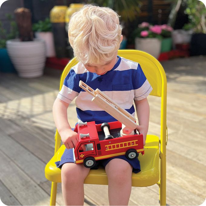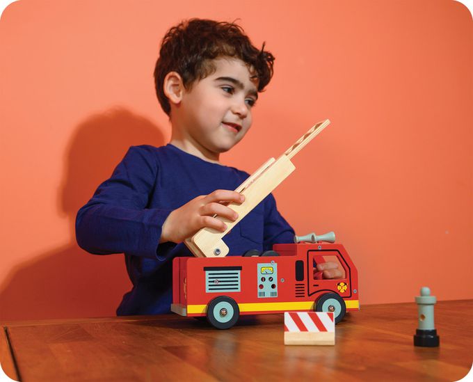 消防車裝備雲梯車,讓孩子從救援行動中瞭解雲梯車的作用及對空間感的延伸。另還有消防配件:消防水帶、消防栓和護欄,讓孩子從遊戲中帶入防災及救災的觀念。角色扮演中,也能讓孩子體會不同角色的重要性,加深對各行各業的理解與尊敬。