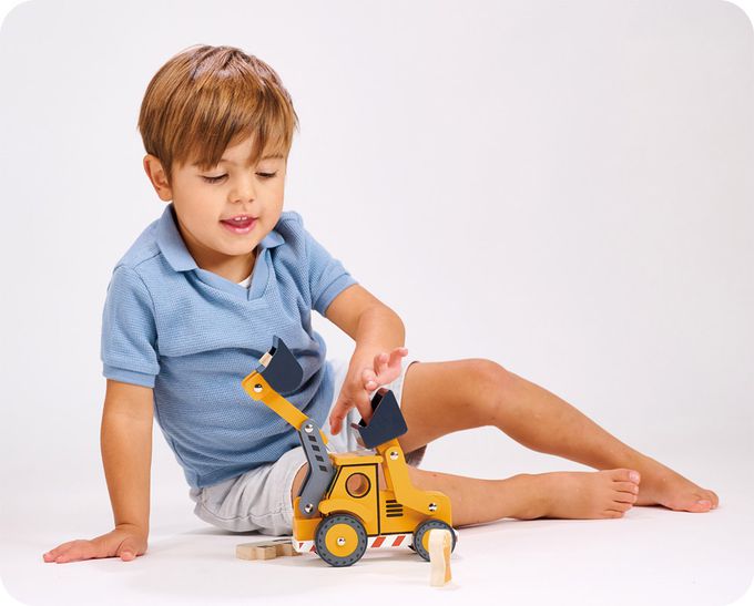 工程兩用挖土機,有4個輪子和2個機械手臂,可用於挖土和堆土。孩子操作的過程還能熟悉工程車的用途和重要性,加深對各行各業的理解與尊敬。