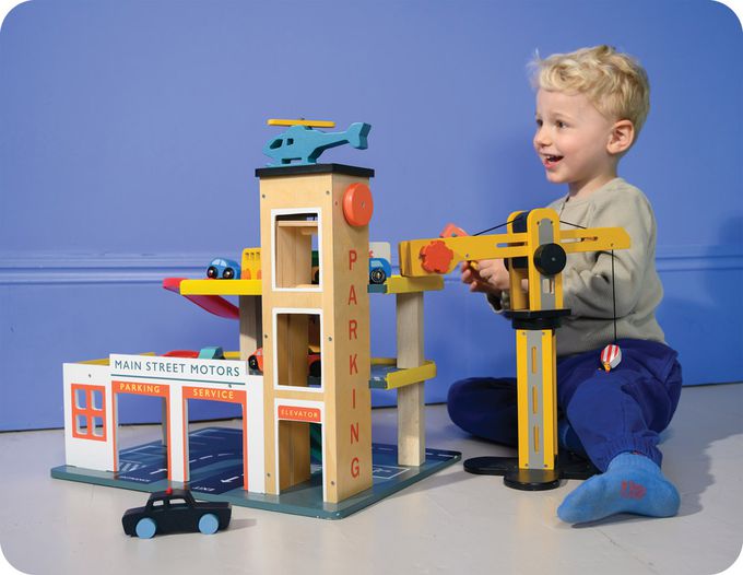 三層樓直升機立體停車場正式啟動!內附2台汽車、直升機、汽車升降梯、直升機停機坪和2個旋轉坡道可通到二、三樓。每層樓都設有停車位,孩子可操作汽車行駛於各層樓,也可搭配自己的玩具小車行駛於停車場並停好車位,練習玩具車的收納。開放式的設計,搭配升降梯和坡道,建構孩子的空間概念和認識立體停車場的運作原理。