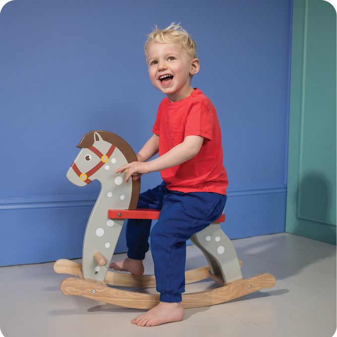 專為幼兒設計的木製搖搖馬,木馬造型吸引孩子的注意。搖晃過程可以刺激前庭覺發展,有助於提升平衡感和協調能力,也可以提升孩子的感統能力。