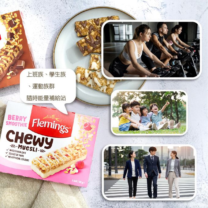 成分:巧克力脆片-穀物(全穀燕麥、膨化米(米、糖、鹽、大麥麥芽萃取物、維生素 B1、維生素B2、菸鹼酸、米糠、焦糖色素、還原鐵))、黑巧克力 (糖、棕櫚油、乳固體、可可粉、複方乳化劑(大豆卵磷脂、聚氧化乙烯(20)山梨醇酐三硬脂酸酯)、香料)、葡萄糖糖漿(含亞硫酸鈉)、糖、聚糊精、品質改良用劑(D-山梨醇、甘油)、葵花籽油、大豆卵磷脂、香料、鹽。 莓果奶昔-穀物 (全穀燕麥 、膨化米 (米、糖、鹽、大麥麥芽萃取物、維生素 B1、維生素B2、菸鹼酸、米糠、焦糖色素、還原鐵))、優格 (糖、乳固型物、棕櫚油、優格粉 (牛奶)、大豆卵磷脂)、葡萄糖糖漿 (含亞硫酸鈉)、糖、聚糊精、品質改良用劑(D-山梨醇、甘油)、覆盆莓塊(覆盆莓果泥、蘋果果泥、梨果泥、李子果泥、轉化糖(蔗糖)、糖、濃縮接骨木汁、小麥纖維、果膠、甘油、檸檬酸、天然香料)、葵花籽油、大豆卵磷脂、鹽、香料。