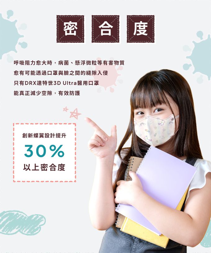 DRX 達特世 - 醫用3D Ultra口罩(幼幼/兒童)-粉嫩獨角獸-20入
