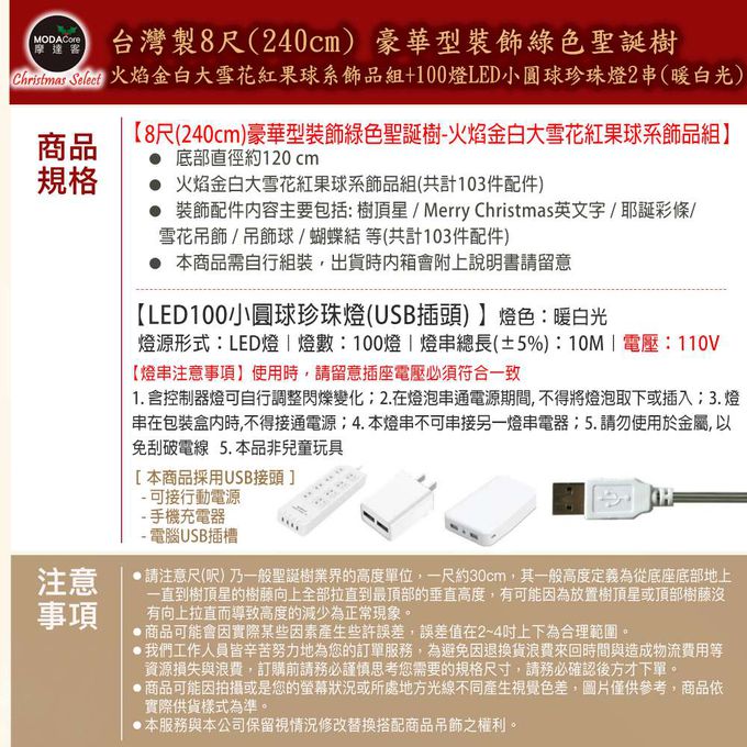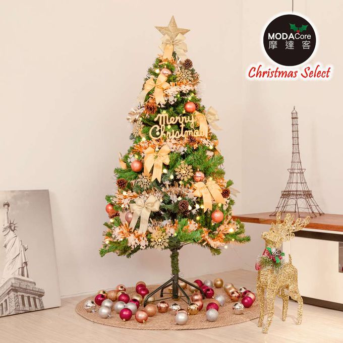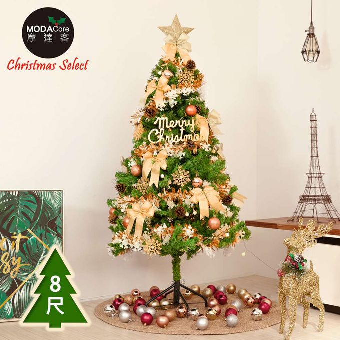 台灣製8尺(240cm)豪華型裝飾綠色聖誕樹/檳金白大雪花金果球系全套飾品組不含燈/本島免運費/歐美耶誕外銷人氣款