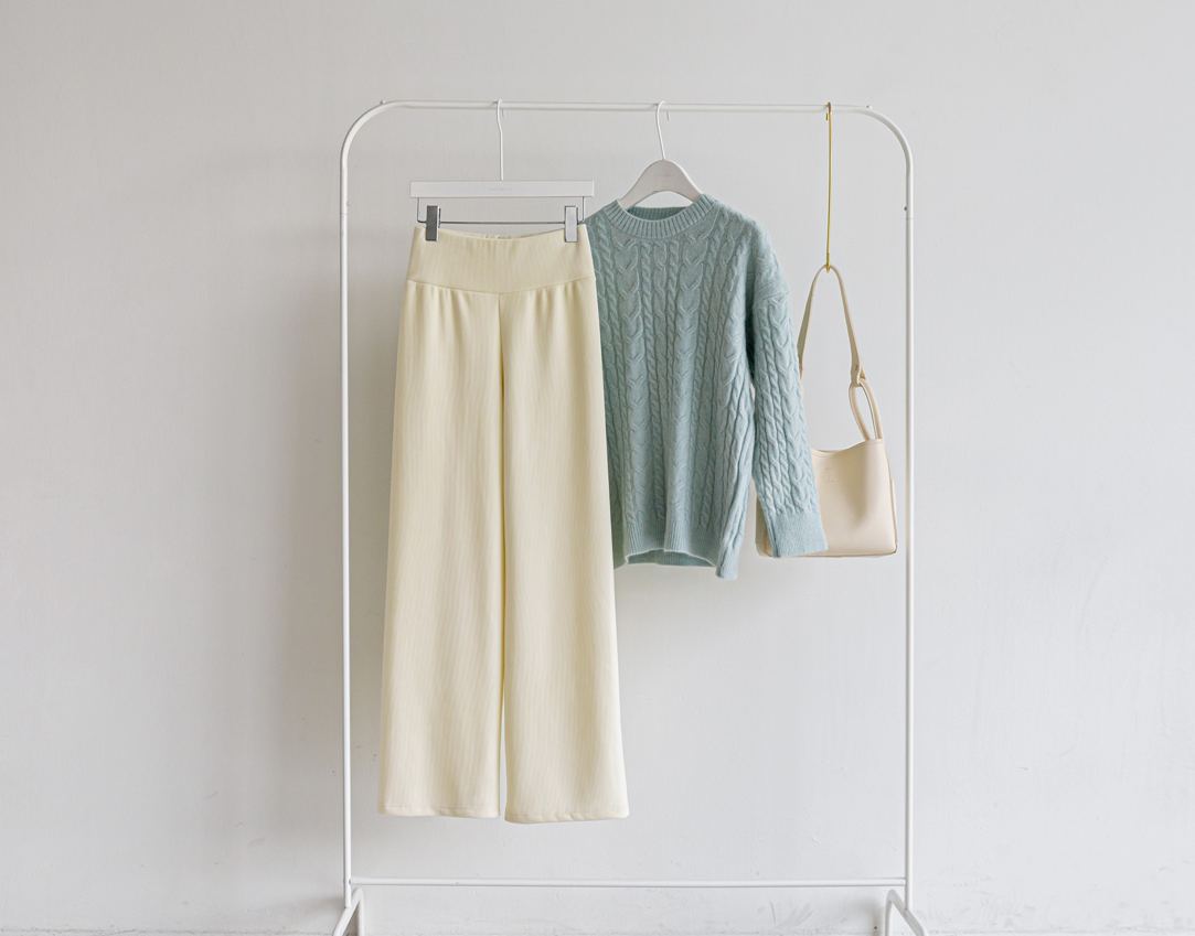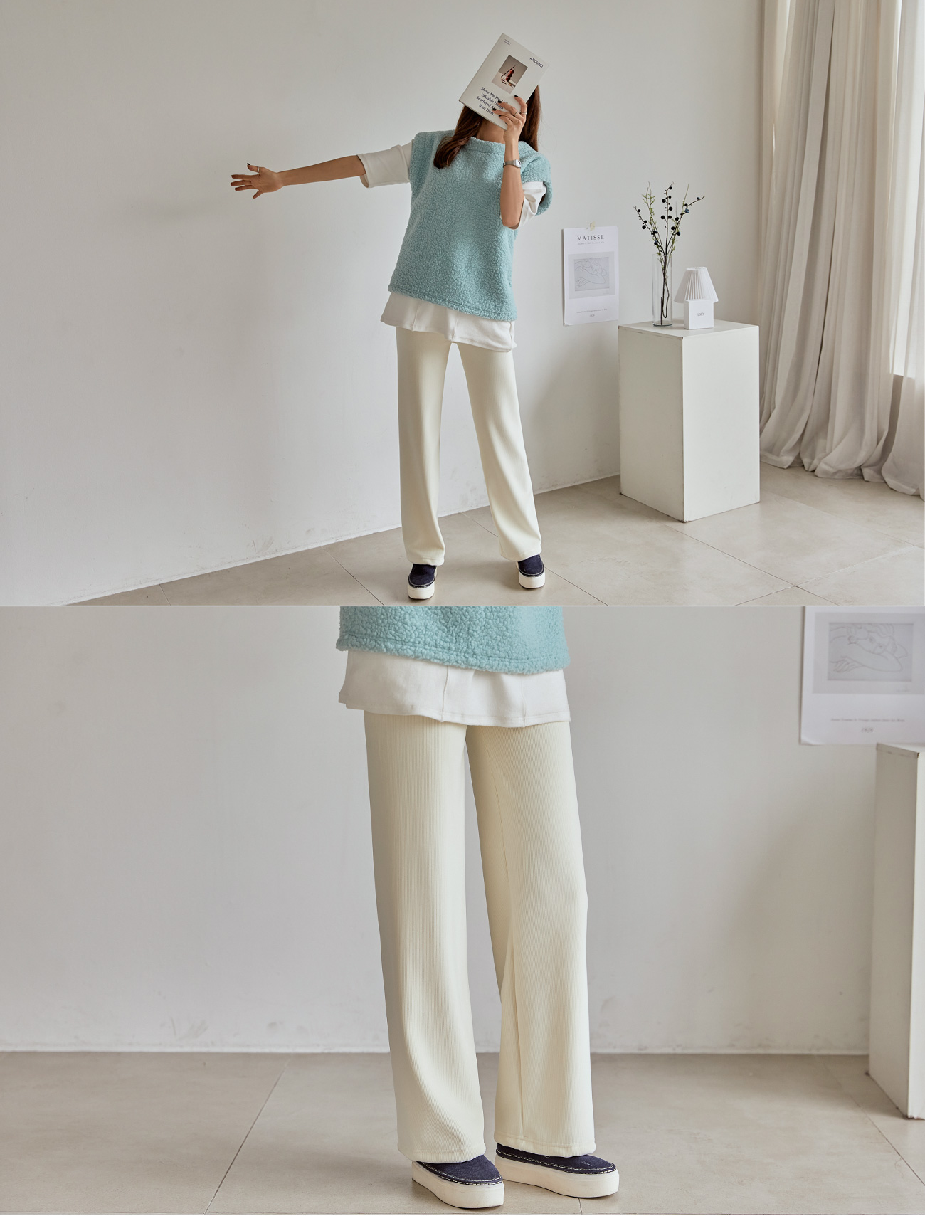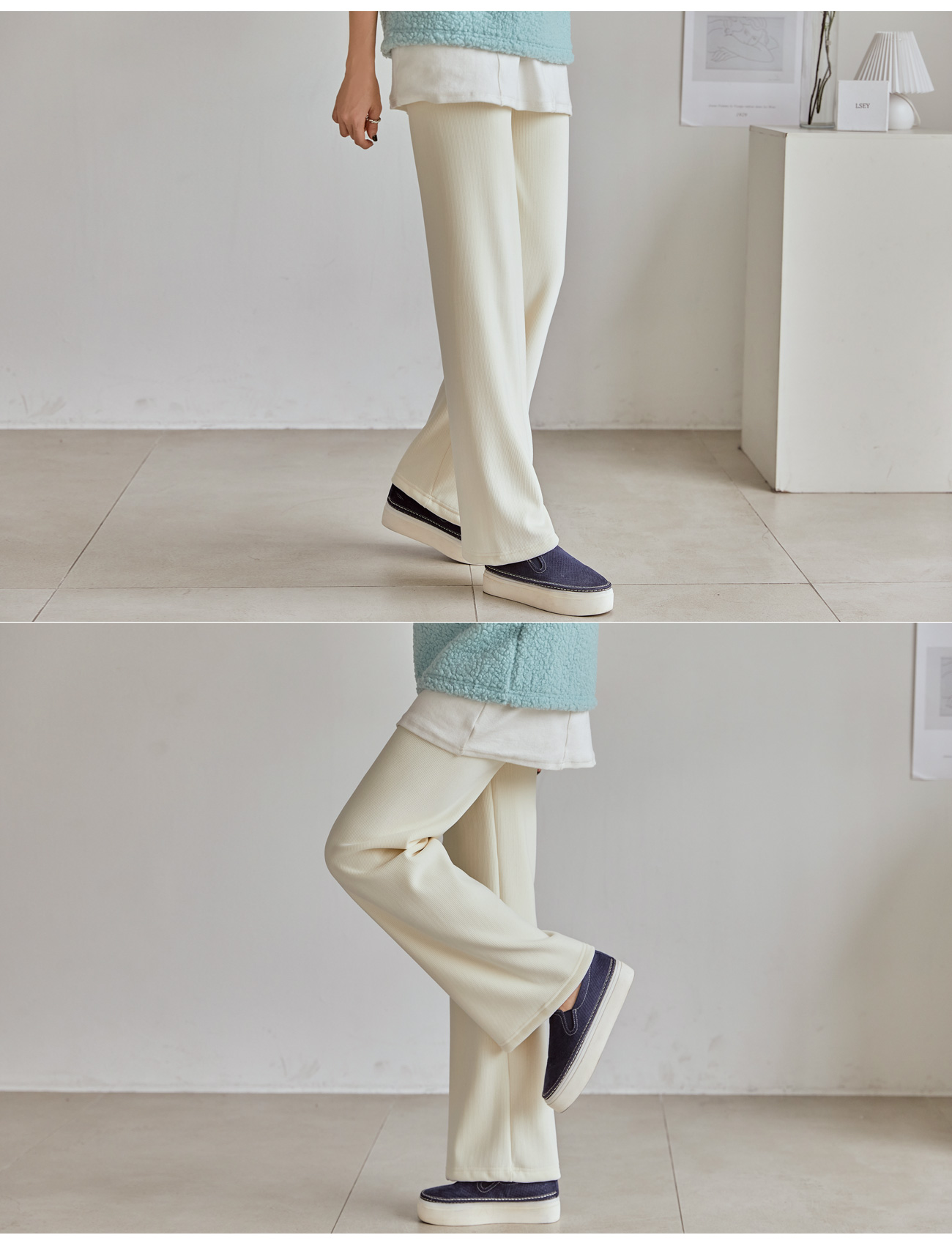 韓國女裝連線 - (內裡刷毛)寬高腰燈芯絨美腿褲-象牙白 (FREE)
