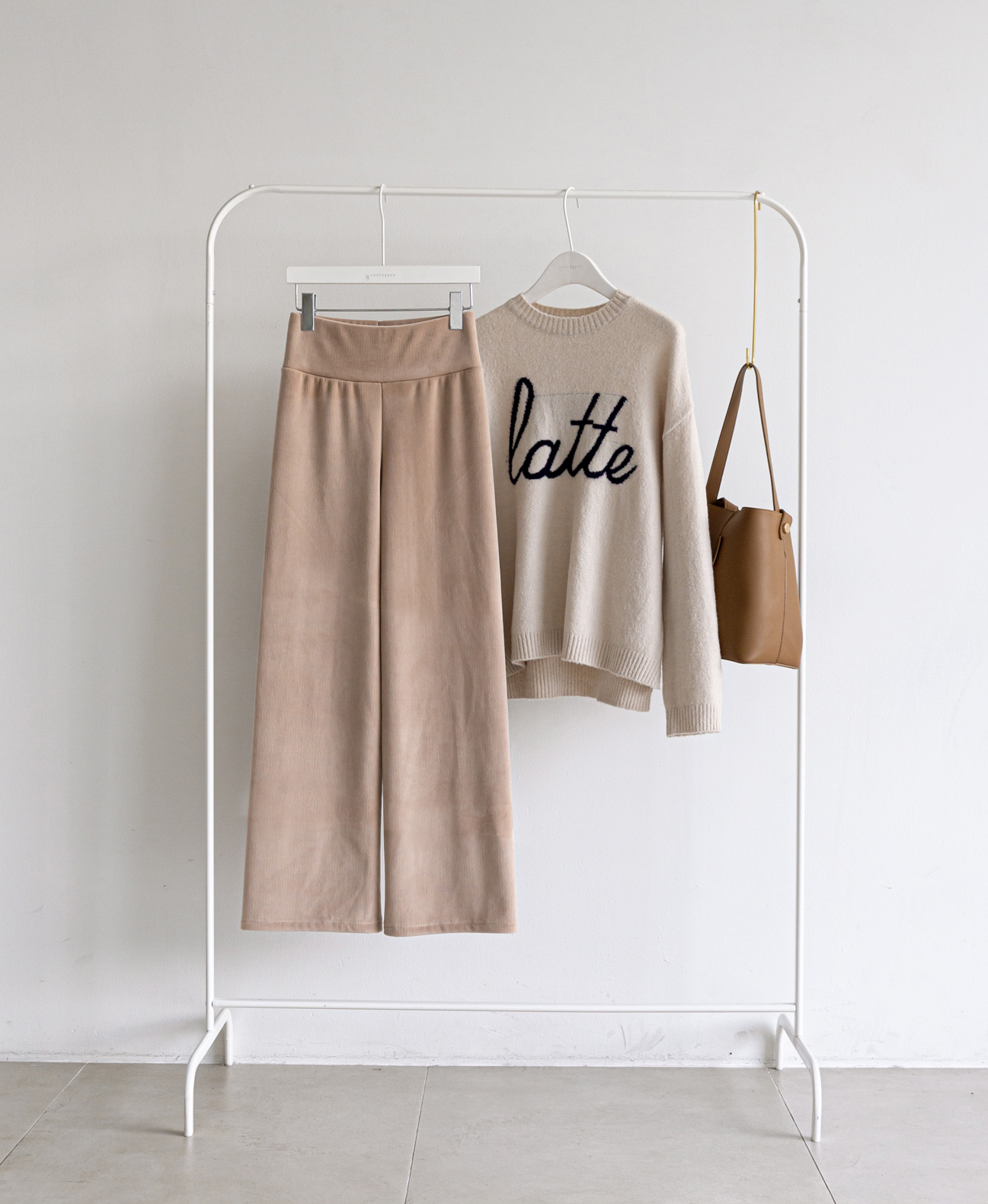 韓國女裝連線 - (內裡刷毛)寬高腰燈芯絨美腿褲-杏 (FREE)