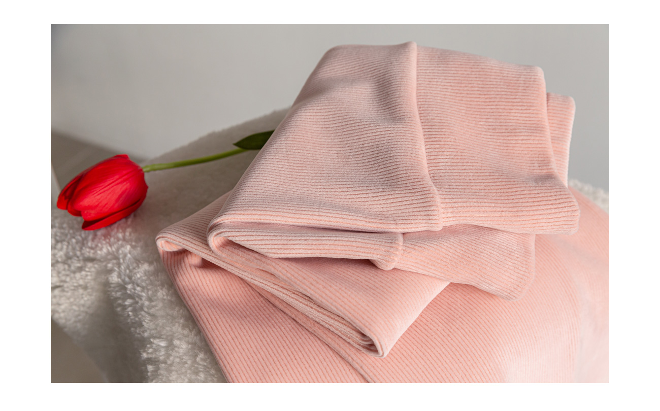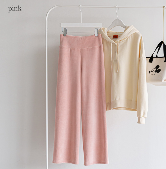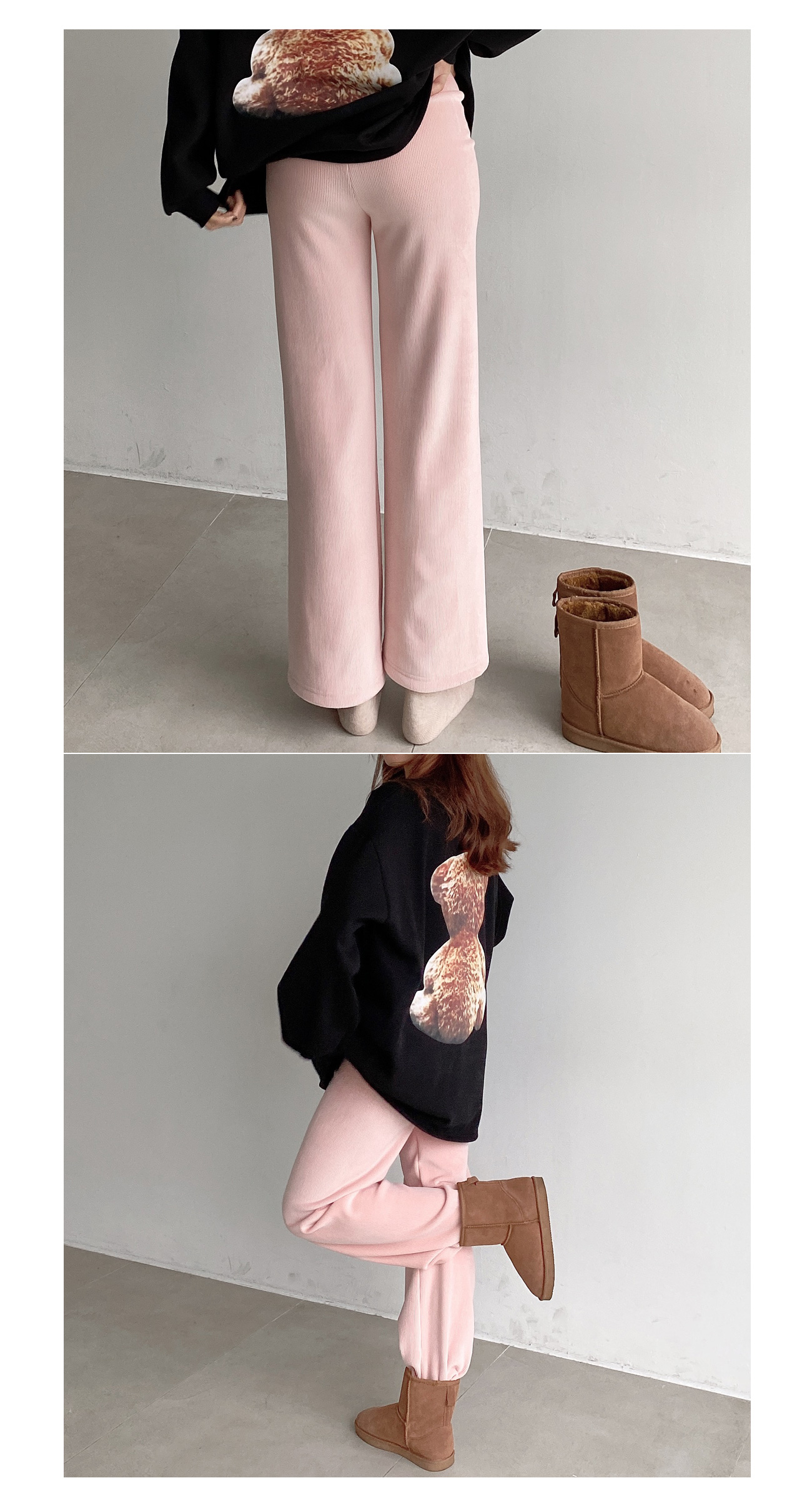 韓國女裝連線 - (內裡刷毛)寬高腰燈芯絨美腿褲-粉 (FREE)