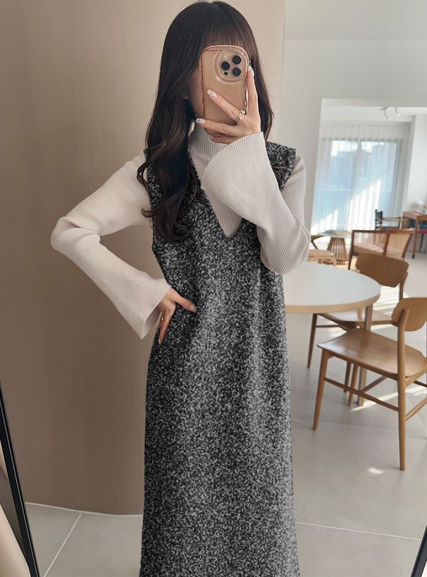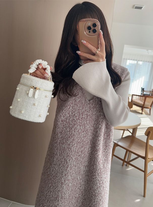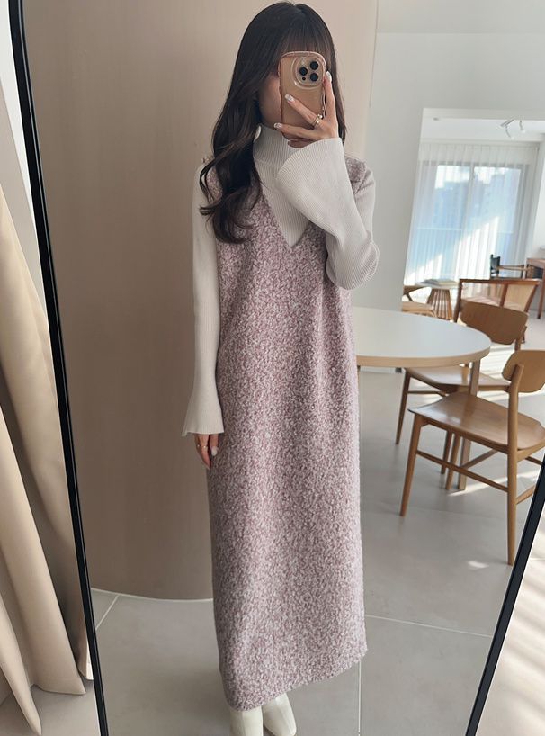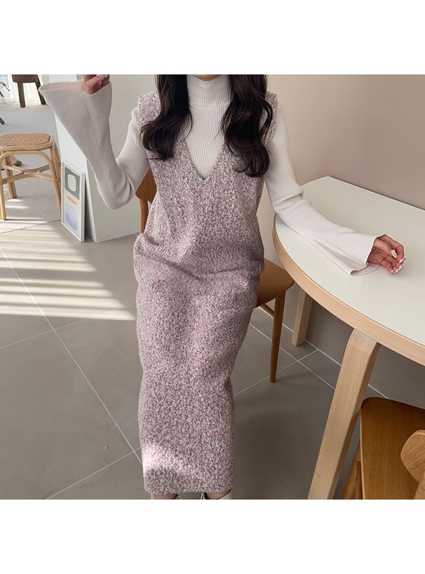 甜美毛絨絨V領合身背心裙
