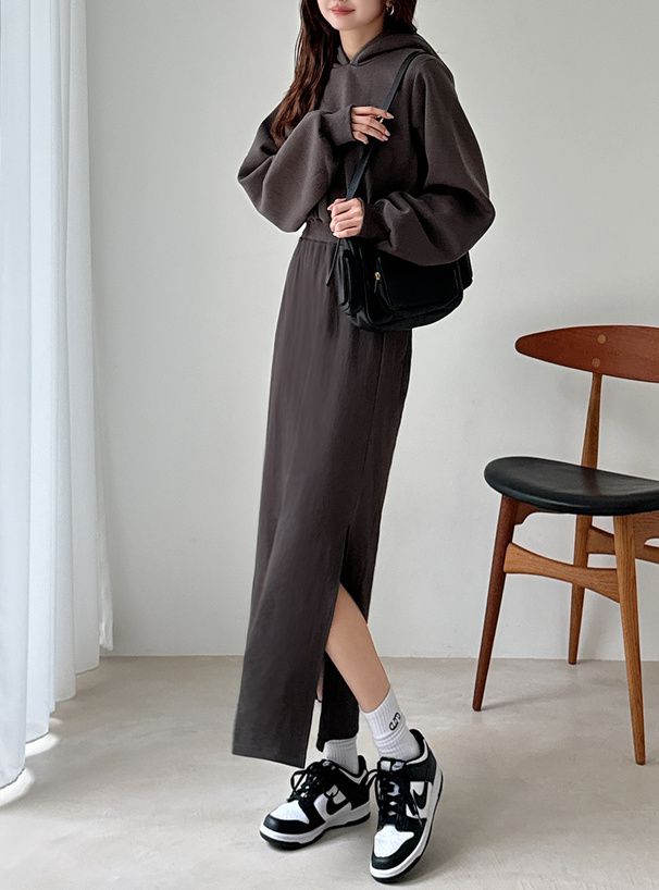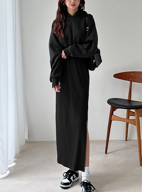露後腰運動風休閒連帽洋裝