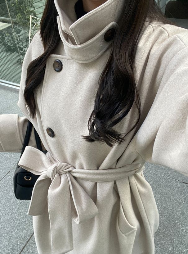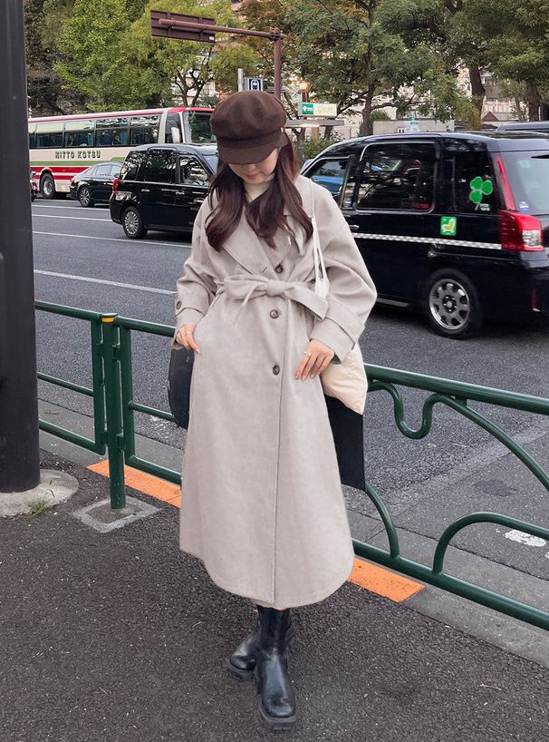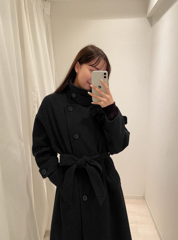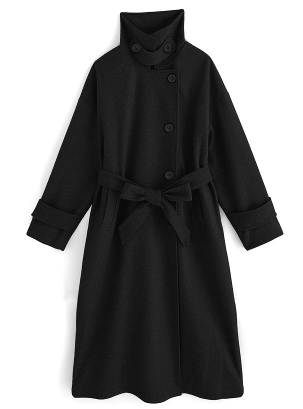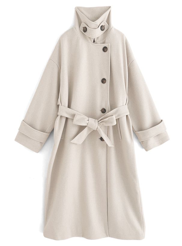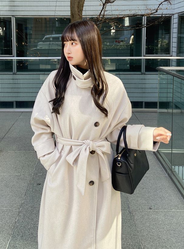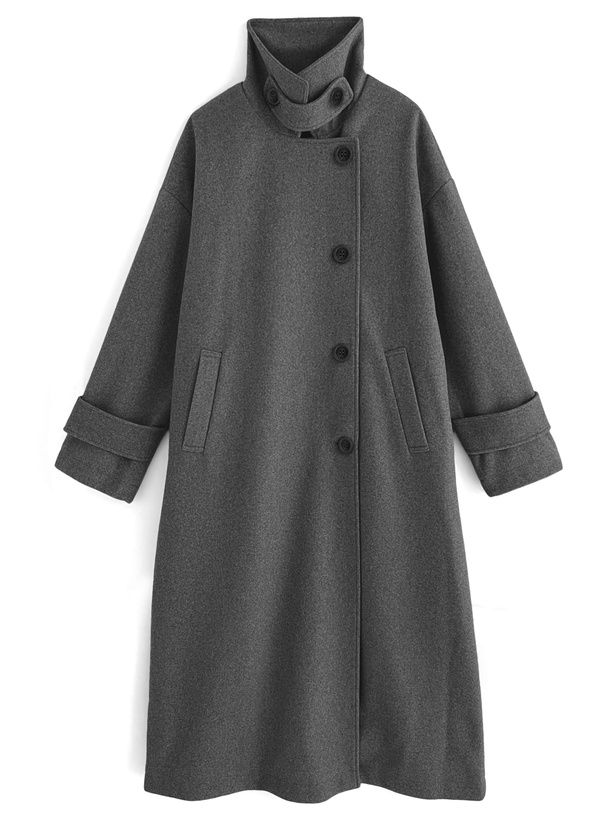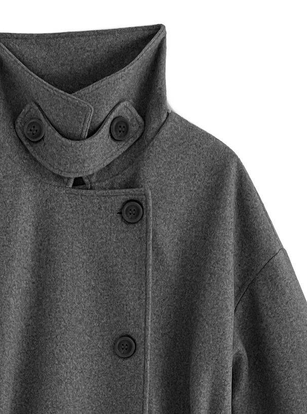 日本 GRL - 時尚排釦立領長版大衣外套-灰