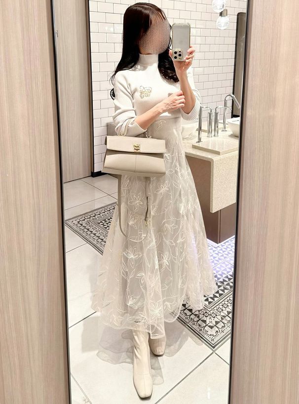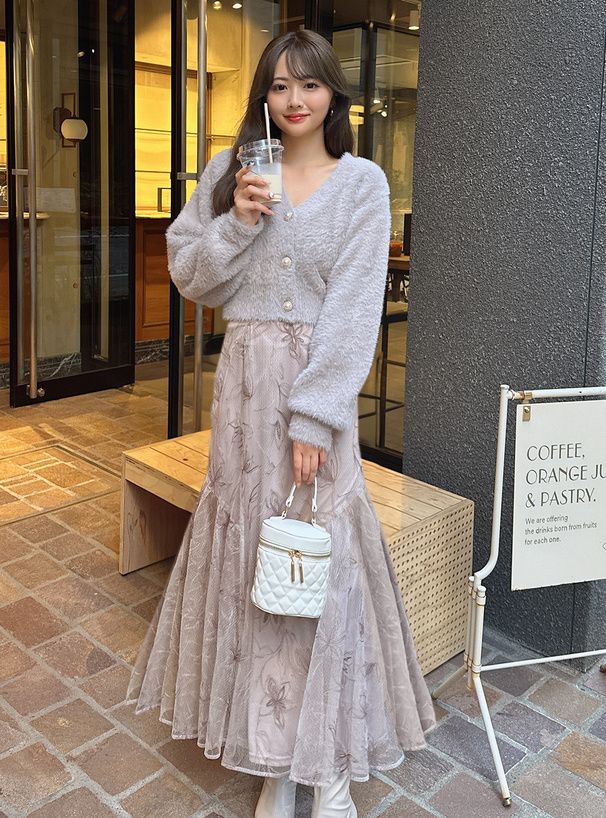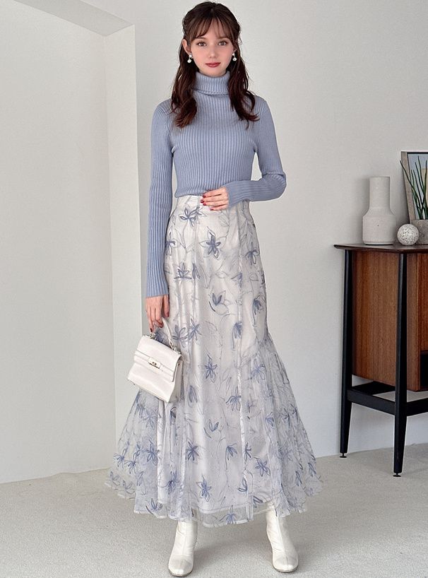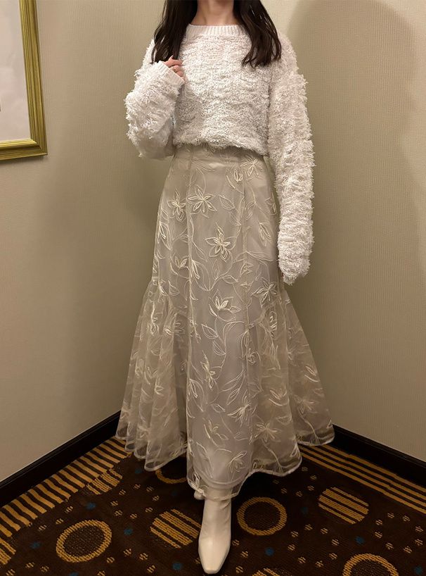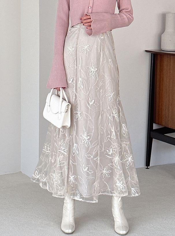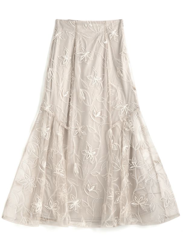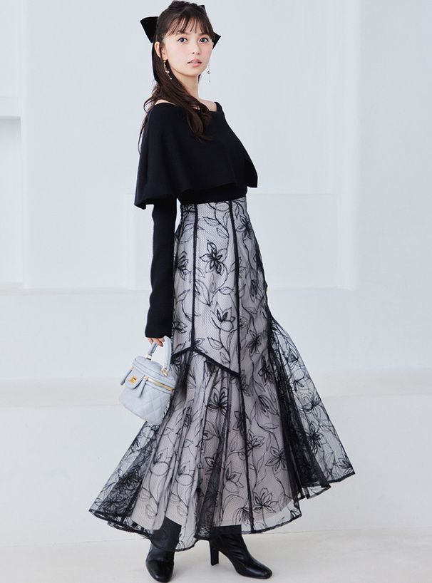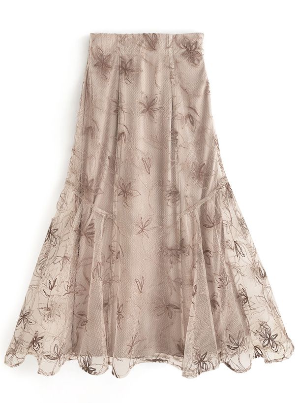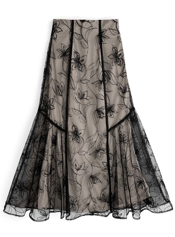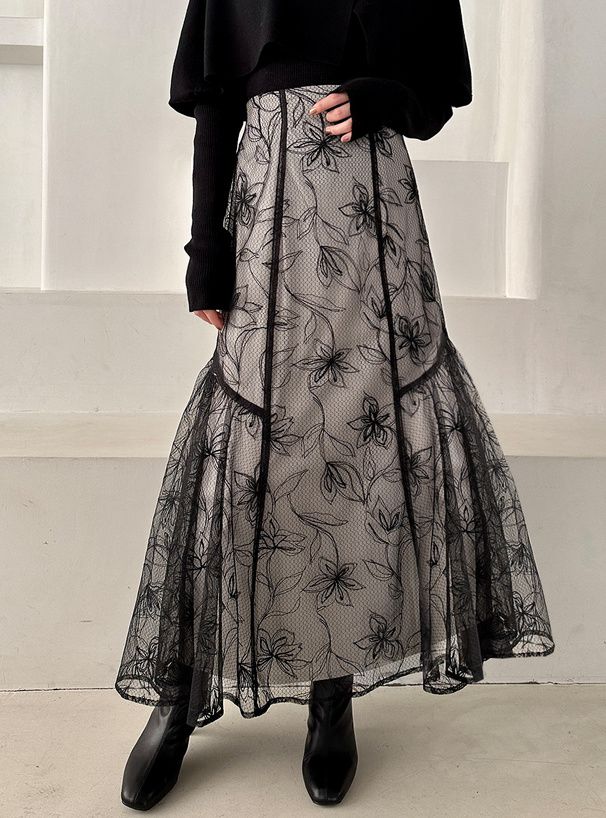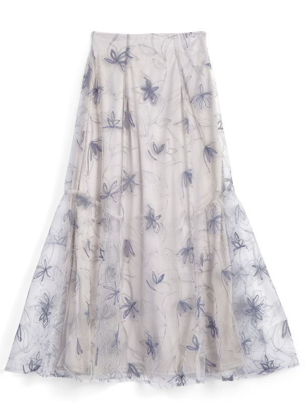 絕美線條花卉薄紗層次長裙