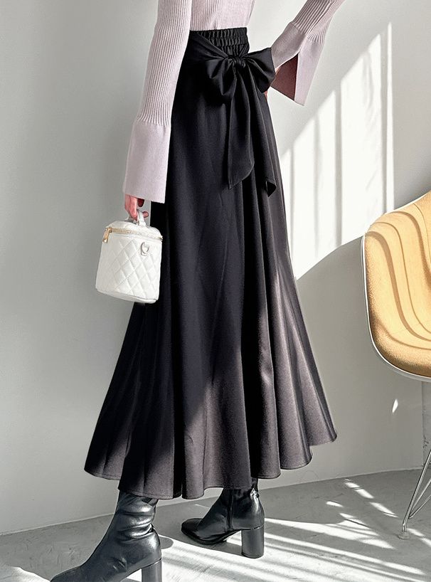 後綁帶典雅束腰喇叭裙
