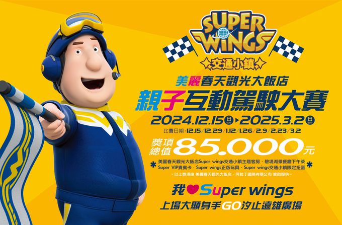 親子駕駛計時賽開始起跑囉!獎項總額85,000元 GO!GO!GO! 每日都可參加預賽取前15名參加決賽,預決賽均需購票參賽計時,將有機會獲得免費住美麗春天觀光大飯店 Super Wings 主題房、碧潭湖景餐廳下午茶、正版玩具...等詳細競賽規則及獎項依主辦單位公告為主。