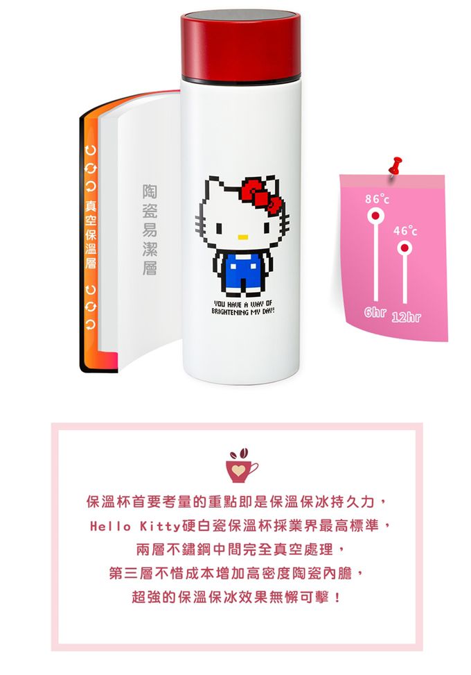 品名:Hello Kitty 內膽陶瓷隨行真空保溫杯 350ml (三麗鷗正版授權 保溫杯)