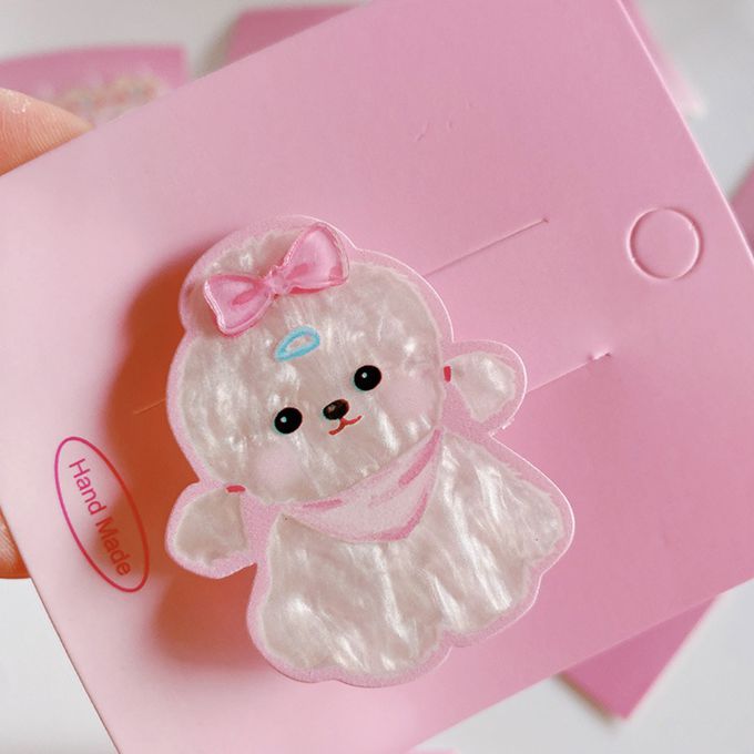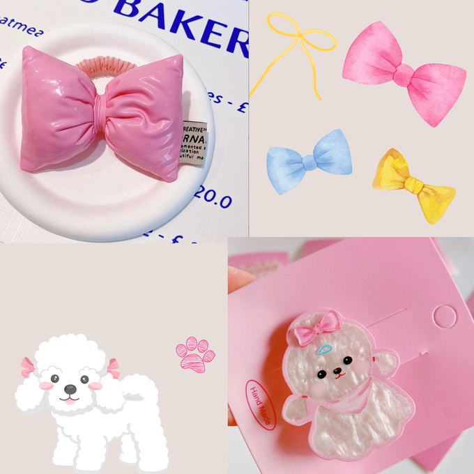 品名:質感醋酸纖維小狗髮夾配澎澎立體大蝴蝶結髮圈-2件組