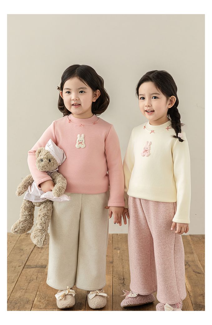 半高領蝴蝶結長袖上衣/內搭衣(加絨)-小兔-米色