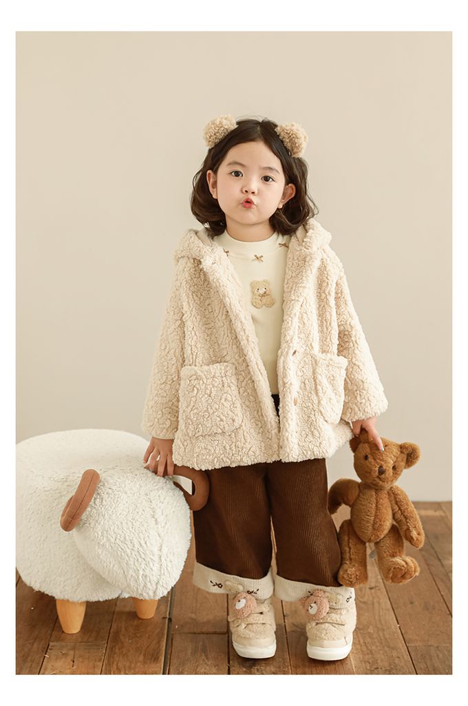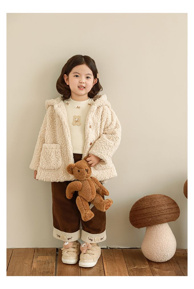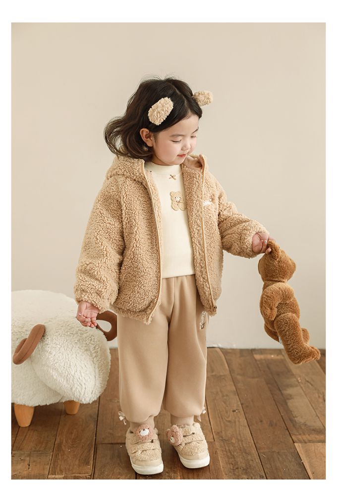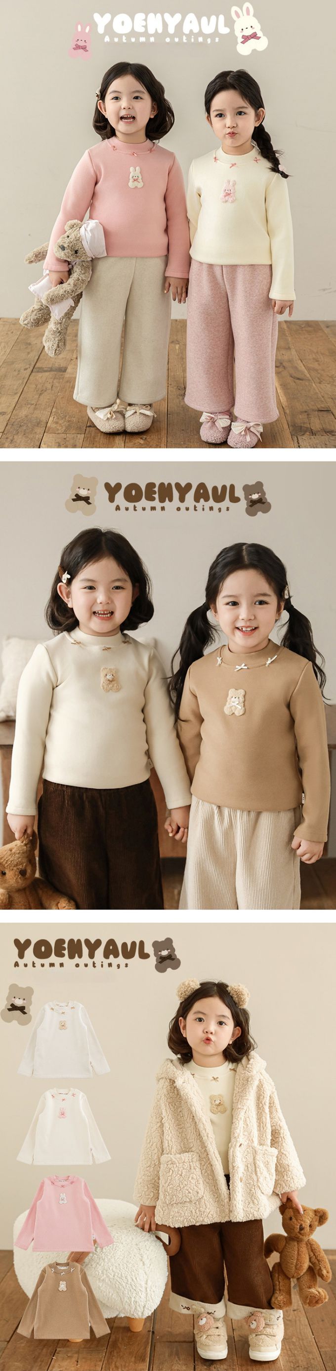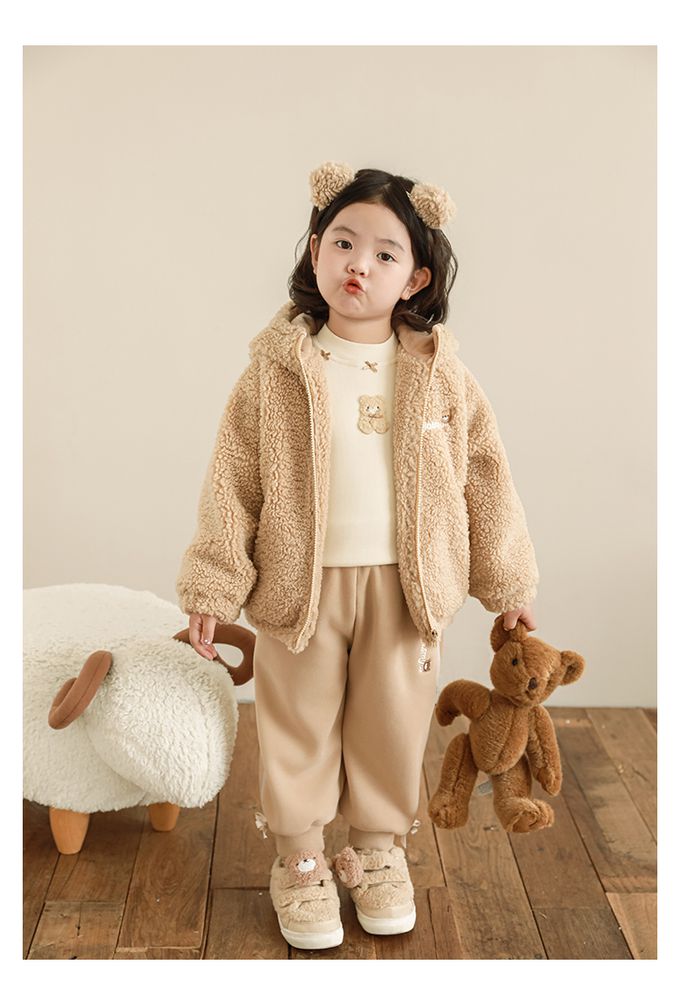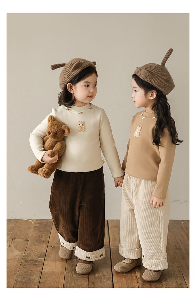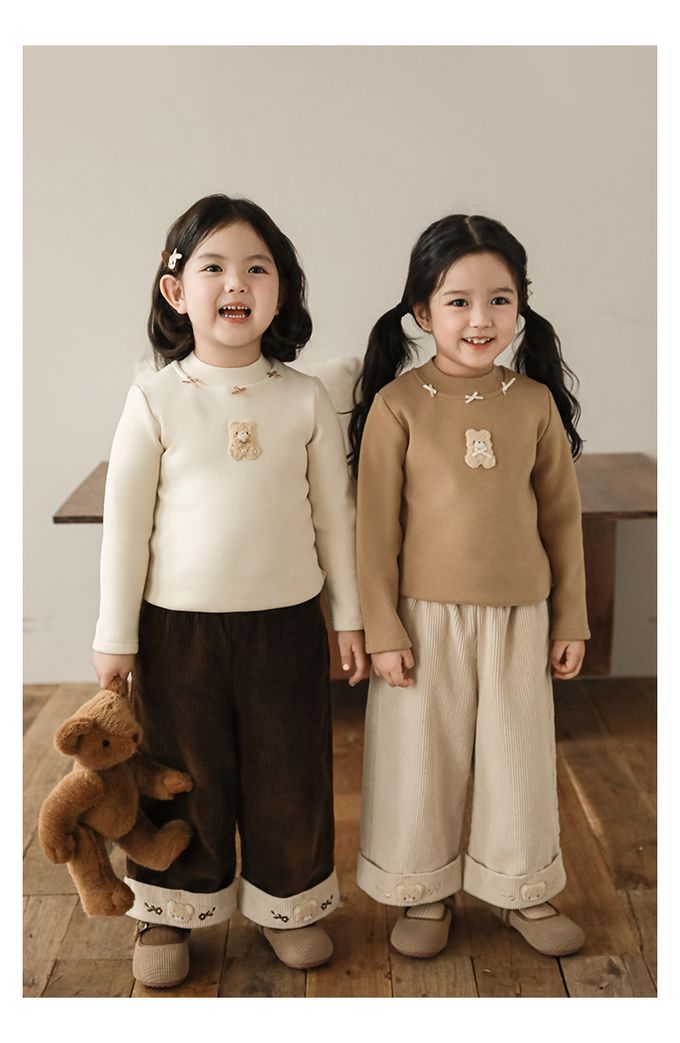 半高領蝴蝶結長袖上衣/內搭衣(加絨)-小熊-米色